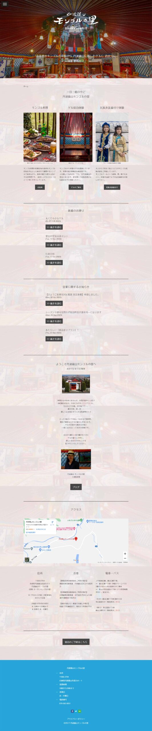 丹波篠山モンゴルの里 様 ホームページ制作 2023年1月26日 最終更新日時 : 2024年1月27日 のんびりデザイナー 丹波篠山モンゴルの里様 https://www.mongolnosato.jp